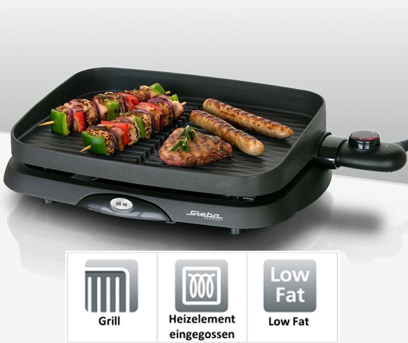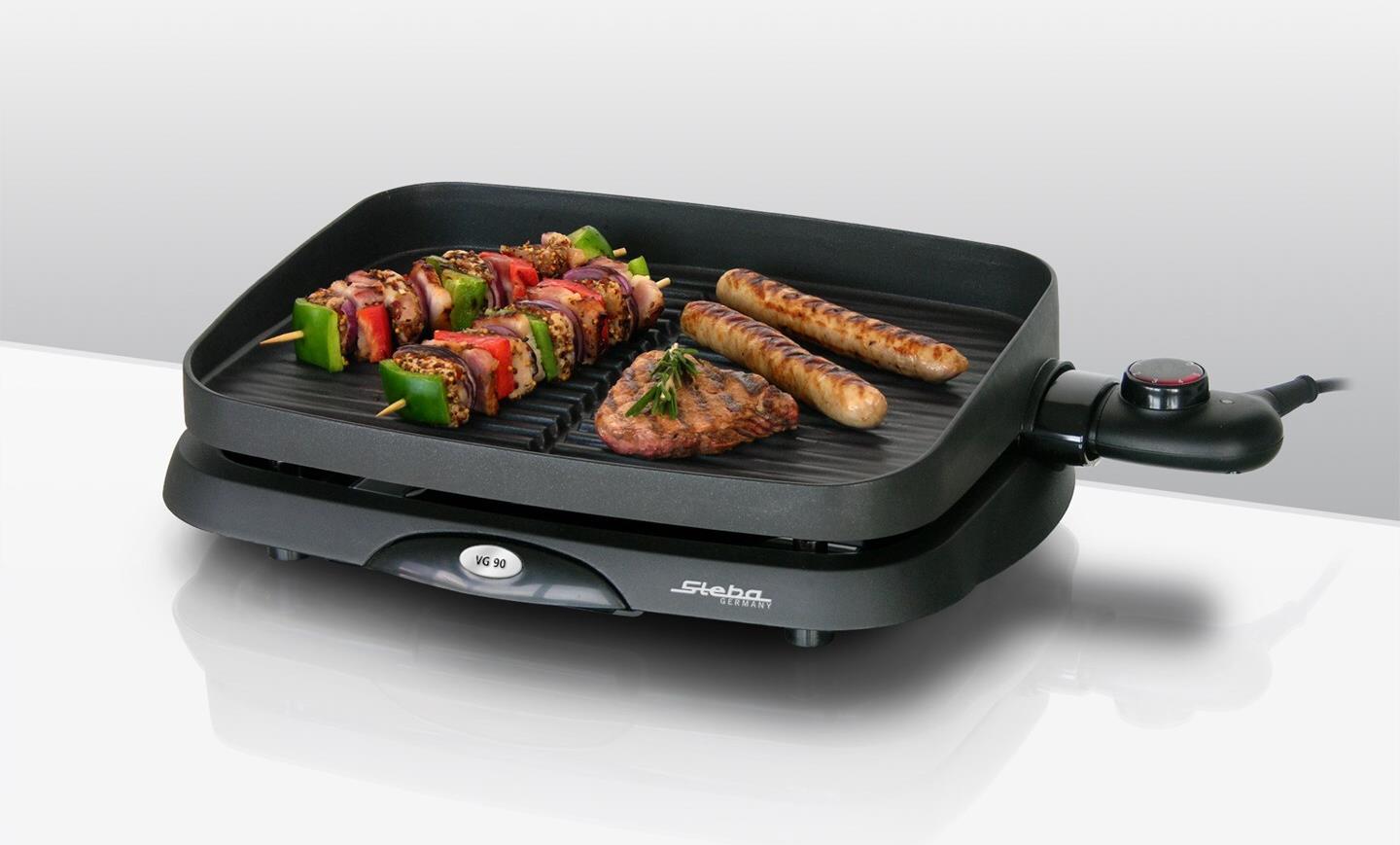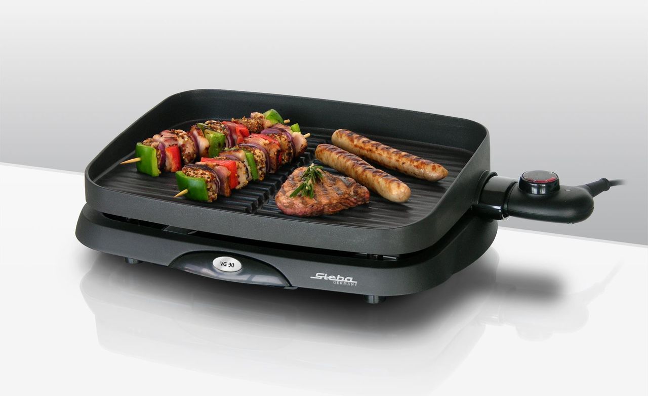 Steba Barbecue-Elektrogrill, rechteckig, Grillelement: Grillplatte, geriffelt, abnehmbar, Grillfläche: 35x25 cm, Antihaftbeschichtung, Temperaturregler, Kontroll-Leuchte, Fettauffangschale, Windschutz, 1.300 Watt (064700)