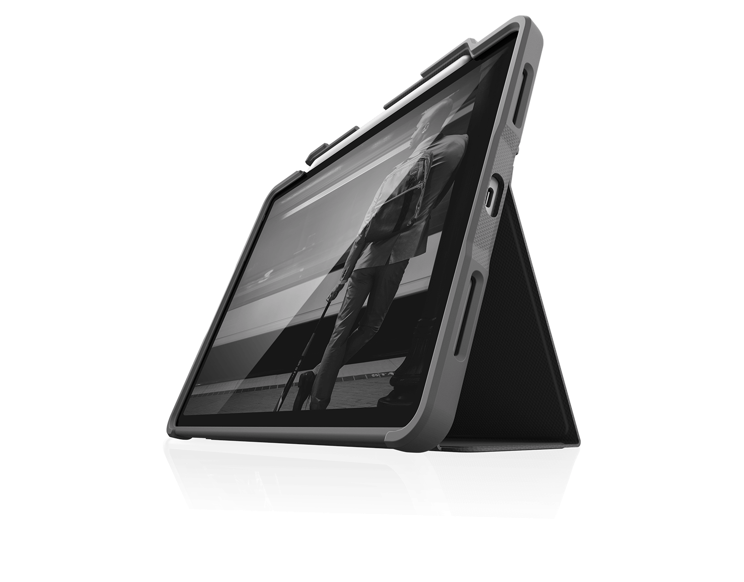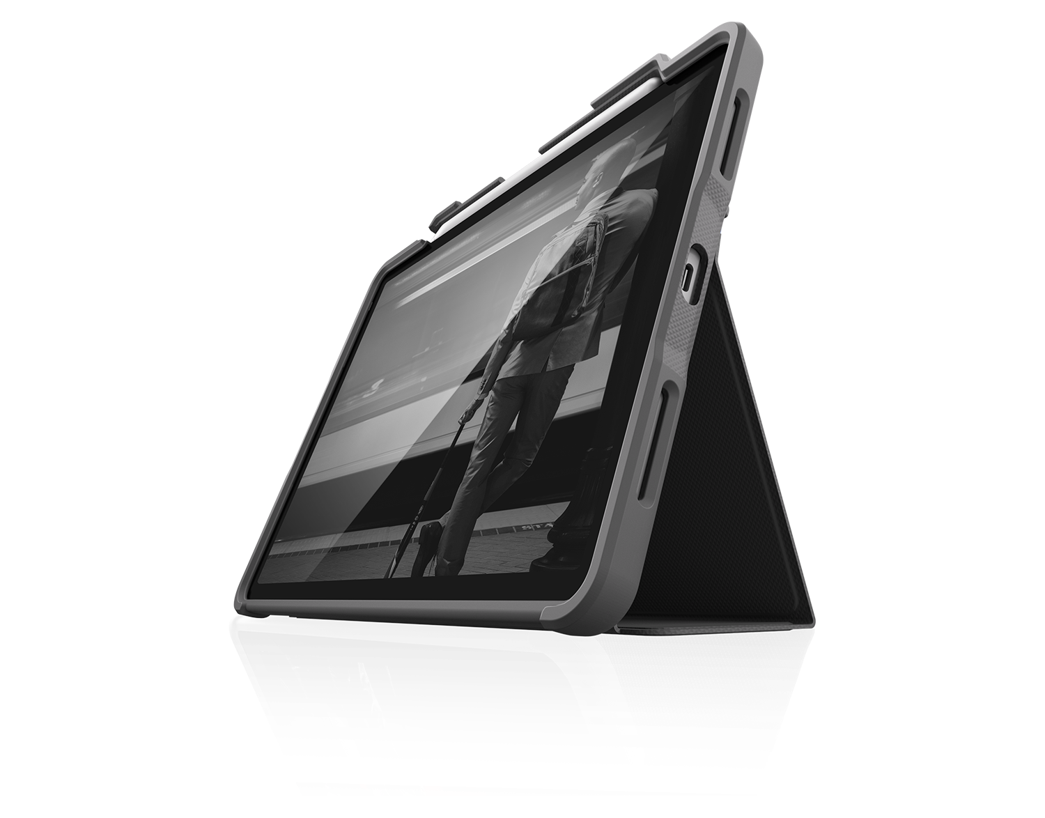 STM dux plus - Flip-Hülle für Tablet - Polyurethan, Polycarbonat, Gummi, Thermoplastisches Polyurethan (TPU) - Schwarz - für Apple 10.9" iPad Air (4. Generation)