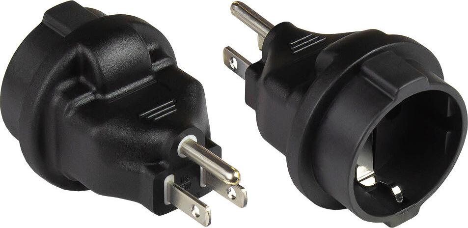 Stromadapter Amerika/USA Netz-Stecker Typ B (NEMA 5-15P) an Schutzkontakt-Buchse Typ F (CEE 7/3, gerade), schwarz, Good Connections® (PA-4502S)