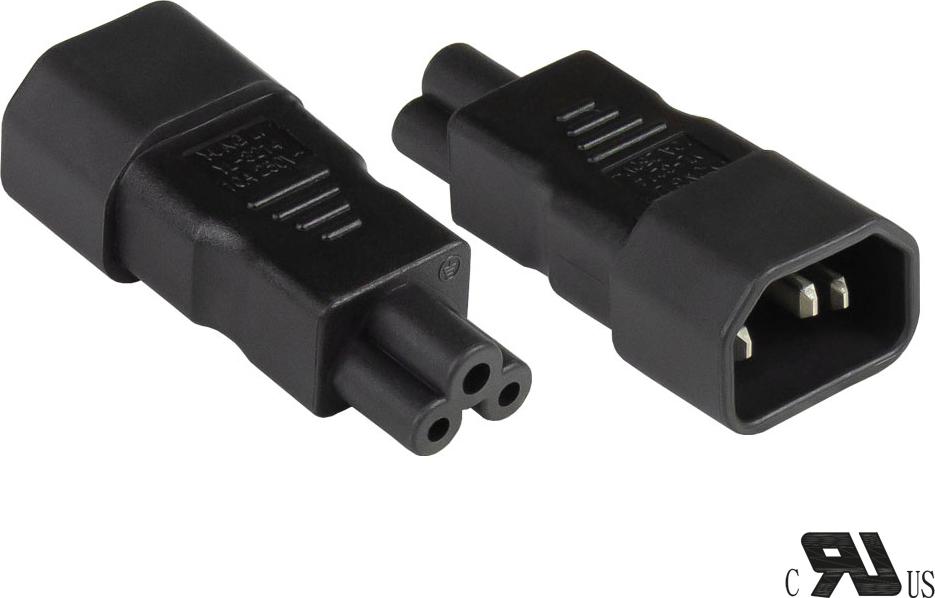 Stromadapter Kaltgeräte-Stecker C14 (gerade) an Kleeblatt-Buchse C5 (gerade), UL, schwarz, Good Connections® (PA-1405S)