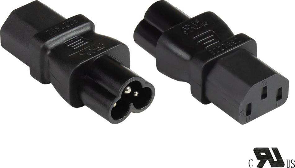 Stromadapter Kaltgeräte-Stecker C6 (gerade) an Kaltgeräte-Buchse C13 (gerade), UL, schwarz, Good Connections® (PA-0630S)