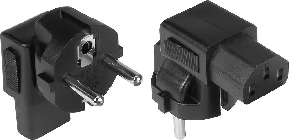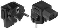 Stromadapter Schutzkontakt-Stecker Typ E+F (CEE 7/7) an Kaltgeräte-Buchse C13, abgewinkelt, schwarz (PA-0133S)