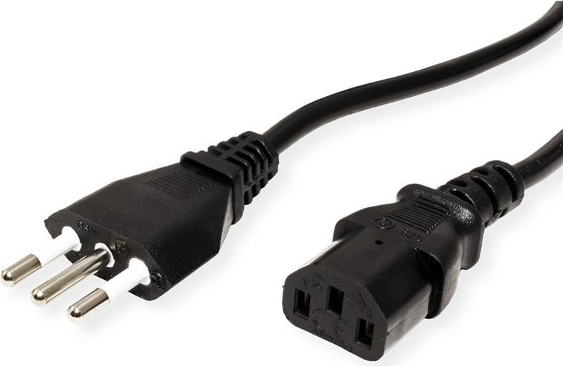 VALUE - Stromkabel - CEI 23-50 (M) bis IEC 60320 C13 gerade - Wechselstrom 250 V - 10 A - 1.8 m - Schwarz - Italien