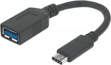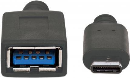Manhattan SuperSpeed Type-C Device Cable - USB-Kabel - USB-C (M) bis USB (W) - USB 3.1 Gen1 - 300 V - 3 A - 15 cm - geschirmt, geformt - Schwarz