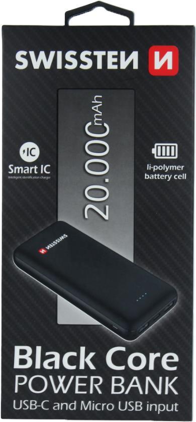 • Swissten Black Core Power Bank, 20000mAh, black, Blister (22013928)