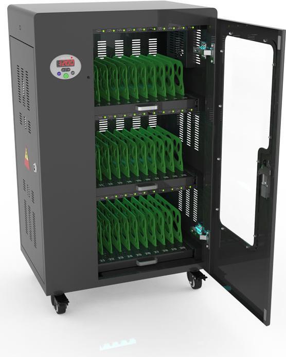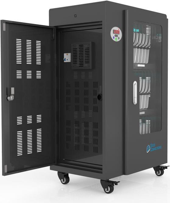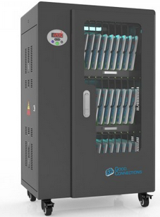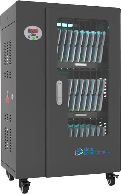 Mit dem innovativen Tablet-Ladewagen begleitet Sie Good Connections auf den Weg der Digitalisierung und sorgt dafür, dass ihre Geräte immer einsatzbereit und geladen sind, wenn sie gebraucht werden. Sichere Aufbewahrung und energieeffiziente sowie ressourcenschonende Ladetechnik – durch seine Flexibilität und Vielseitigkeit ist der UL-zertifizierte Tablet-Ladewagen von Good Connections der ideale Begleiter für Ihr Projekt im Bildungswesen, Gesundheitswesen, Industrie, Tagungsstätten, Hotels und der Gastronomie. Machen Sie sich keine Gedanken mehr darüber ob Sie das passende Ladegerät für ihr Tablet zur Hand haben, denn durch die USB-Ports mit intelligenter IC-Ladesteuerung benötigen Sie nur noch eine Standard-Steckdose für bis zu 65 Tablets. Eine in jeder Ladeebene angebrachte UV-C Lampe sorgt umweltfreundlich und ohne Chemie für sterilere Verhältnisse und eine verbesserte Hygiene. Die ausziehbaren und nummerierten Fächer dienen der einfachen Zuordnung der Geräte zu den einzelnen Nutzern.