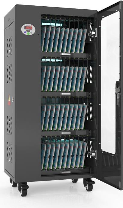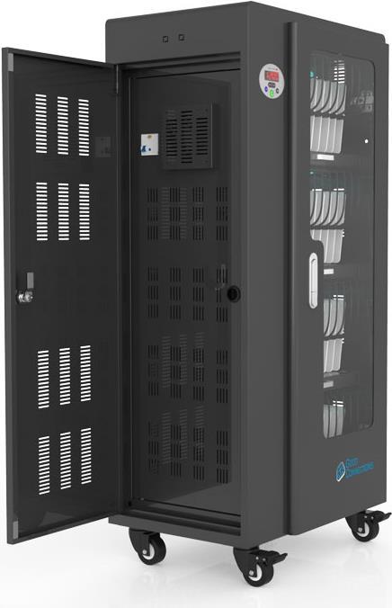 Mit dem innovativen Tablet-Ladewagen begleitet Sie Good Connections auf den Weg der Digitalisierung und sorgt dafür, dass ihre Geräte immer einsatzbereit und geladen sind, wenn sie gebraucht werden. Sichere Aufbewahrung und energieeffiziente sowie ressourcenschonende Ladetechnik – durch seine Flexibilität und Vielseitigkeit ist der UL-zertifizierte Tablet-Ladewagen von Good Connections der ideale Begleiter für Ihr Projekt im Bildungswesen, Gesundheitswesen, Industrie, Tagungsstätten, Hotels und der Gastronomie. Machen Sie sich keine Gedanken mehr darüber ob Sie das passende Ladegerät für ihr Tablet zur Hand haben, denn durch die USB-Ports mit intelligenter IC-Ladesteuerung benötigen Sie nur noch eine Standard-Steckdose für bis zu 65 Tablets. Eine in jeder Ladeebene angebrachte UV-C Lampe sorgt umweltfreundlich und ohne Chemie für sterilere Verhältnisse und eine verbesserte Hygiene. Die ausziehbaren und nummerierten Fächer dienen der einfachen Zuordnung der Geräte zu den einzelnen Nutzern.
