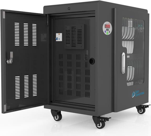 Mit dem innovativen Tablet-Ladewagen begleitet Sie Good Connections auf den Weg der Digitalisierung und sorgt dafür, dass ihre Geräte immer einsatzbereit und geladen sind, wenn sie gebraucht werden. Sichere Aufbewahrung und energieeffiziente sowie ressourcenschonende Ladetechnik – durch seine Flexibilität und Vielseitigkeit ist der UL-zertifizierte Tablet-Ladewagen von Good Connections der ideale Begleiter für Ihr Projekt im Bildungswesen, Gesundheitswesen, Industrie, Tagungsstätten, Hotels und der Gastronomie. Machen Sie sich keine Gedanken mehr darüber ob Sie das passende Ladegerät für ihr Tablet zur Hand haben, denn durch die USB-Ports mit intelligenter IC-Ladesteuerung benötigen Sie nur noch eine Standard-Steckdose für bis zu 65 Tablets. Eine in jeder Ladeebene angebrachte UV-C Lampe sorgt umweltfreundlich und ohne Chemie für sterilere Verhältnisse und eine verbesserte Hygiene. Die ausziehbaren und nummerierten Fächer dienen der einfachen Zuordnung der Geräte zu den einzelnen Nutzern.Produkttext[/head]Für Projekte im Bildungswesen, Gesundheitswesen, Industrie, Tagungsstätten, Hotels und der GastronomieJe nach Modell für 10 bis 65 GeräteSynchronisierungsfunktion für iOS und Android GeräteUmweltfreundliche UV-C Desinfektion der Tablets ganz ohne ChemieEnergieeffiziente LadetechnikMit dem innovativen Tablet-Ladewagen begleitet Sie Good Connections® auf den Weg der Digitalisierung und sorgt dafür, dass ihre Geräte immer einsatzbereit und geladen sind, wenn sie gebraucht werden. Sichere Aufbewahrung, energieeffiziente sowie ressourcenschonende Ladetechnik und Synchronisierungs-Funktion – durch seine Flexibilität und Vielseitigkeit ist der UL-zertifizierte Tablet-Ladewagen von Good Connections® der ideale Begleiter für Ihr Projekt im Bildungswesen, Gesundheitswesen, Industrie, Tagungsstätten, Hotels und der Gastronomie. Machen Sie sich keine Gedanken mehr darüber ob Sie das passende Ladegerät für ihr Tablet zur Hand haben, denn durch die USB-Ports mit intelligenter IC-Ladesteuerung benötigen Sie nur noch eine Standard-Steckdose für bis zu 65 Tablets. Eine in jeder Ladeebene angebrachte UV-C Lampe sorgt umweltfreundlich und ohne Chemie für sterilere Verhältnisse und eine verbesserte Hygiene. Die ausziehbaren und nummerierten Fächer dienen der einfachen Zuordnung der Geräte zu den einzelnen Nutzern.Synchronisierungsfunktion für iOS und Android GeräteÜber die Software* kann der Ladezustand aller angeschlossenen Geräte überwacht werden. Zudem können für ein einfaches und zentralisiertes Gerätemanagement Geräte personalisiert, sowie Software (Apps) und Dateien individuell oder universell aufgespielt werden.Intuitives BedienpanelDie Ladezeitbegrenzung und die UV-C Desinfektion können über das Bedienpanel gesteuert werden. Die Ladezeitbegrenzung kann zwischen einer und 24 Stunden gewählt werden. Nach Ablauf der eingestellten Dauer wird der Ladevorgang gestoppt. Die Desinfektion dauert nach dem Aktivieren fünf Minuten und schaltet sich anschließend automatisch wieder ab.USB-Ports mit IC-LadesteuerungDie USB-Ports erkennen automatisch das angeschlossene Gerät und passen die Ladeleistung dementsprechend an (max. Output je 5V/2,4A). Neben den USB-Ports angebrachte LED-Indikatoren zeigen den Ladestatus an (grün: Gerät nicht angeschlossen oder vollgeladen, rot: Gerät lädt).Effiziente KühlungZum Schutz der Geräte ist der Ladewagen je nach Modell mit bis zu zwei leistungsstarken und leisen Lüftern und einem automatischen Temperaturkontrollsystem ausgestattet. Ab einer Netzteiltemperatur von 45 °C werden die eingebauten Lüfter aktiviert und kühlen zuverlässig die angeschlossenen Geräte.Hochstabile Acryl-SichttürDurch die abschließbare Sichttür kann jederzeit der Ladestatus (rot/grüne LED-Indikatoren) erfasst werden. Zugleich bietet sie Schutz vor unerlaubten Zugriff.Sicherheit bis ins letzte DetailAlle Kanten des Ladewagens sind mit abgerundeten Ecken ausgestattet. Öffnungen sind so platziert, dass sie gegen Wassereintritt geschützt sind. Ein niedriger Schwerpunkt sorgt für zusätzliche Stabilität.Hochwertige Schwerlastrollen und HandgriffDie stabilen Schwerlastrollen sind jeweils bis 85 kg belastbar. Die 360° Drehfähigkeit und integrierte Feststellbremse sorgen für optimales Handling. Mit Hilfe des Aluminium-Handgriffes lässt sich der Tablet-Ladewagen mühelos von Raum zu Raum transportieren.Hinweis:USB-C™ Kabel mit Lade- und Datenfunktion gehören standardmäßig zum Lieferumfang des Tablet-Ladewagen von Good Connections®.Für iOS Geräte erhalten Sie von Apple zertifizierte MFI (Made for iPod/iPhone/iPad) Lade- und Datenkabel unter der ALCASA Artikelnummer: ZUB-IP306[head]Hauptmerkmale
