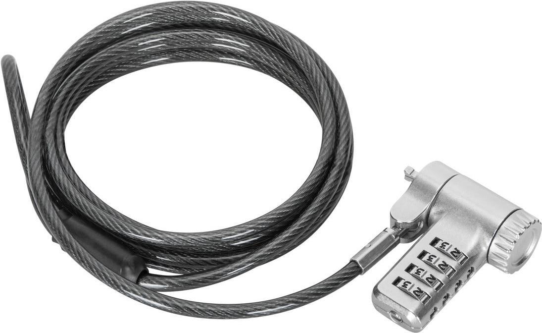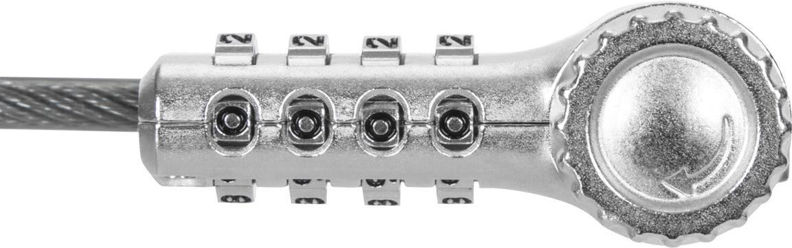 Ganz gleich, ob Ihr Team von zu Hause aus, in der Flughafenlounge oder in einem Café arbeitet, Laptop-Schlösser sind ein Muss, wenn Sie Ihre Geräte sichern und sicherstellen wollen, dass niemand wertvolle oder private Informationen in die Hände bekommt. Das DEFCON Ultimate Universal Serialized Combination Lock ist der ideale Sicherheitsbegleiter, denn diese Schlösser sind einfach zu handhaben und durch ihre schlanke Größe leicht zu transportieren, wodurch sie sich hervorragend für schlanke Geräte eignen. Das Schloss lässt sich an den meisten gängigen Schlössern wie Kensington Nano, Kensington K-Slot und sogar an den übergroßen, keilförmigen Schlössern von Noble befestigen, so dass Laptops, Docking-Stationen oder Monitore genau dort bleiben, wo sie hingehören.Die universelle Passform in Verbindung mit dem serienmäßigen Kombinationsschloss bedeutet, dass Sie sich keine Sorgen mehr über den Verlust von austauschbaren Köpfen oder Schlüsseln machen müssen. Außerdem bietet das 4-stellige Kombinationsschloss bis zu 10.000 verschiedene Codes, was Ihre Geräte noch besser vor versuchten Kombinationsversuchen schützt. Der Schlosskopf kann um volle 360 Grad gedreht werden, was die Benutzerfreundlichkeit erhöht, während sein 6,5 Fuß langes Kabel aus verzinktem und ummanteltem Stahl es schnittfest und rostbeständig macht, aber dennoch flexibel für eine einfache Installation ist. Wo auch immer Ihr Arbeitstag sein mag, das DEFCON Ultimate Universal Serialized Combination Lock gibt Ihnen die Sicherheit, dass Ihre teure Ausrüstung sicher bleibt.Hauptmerkmale