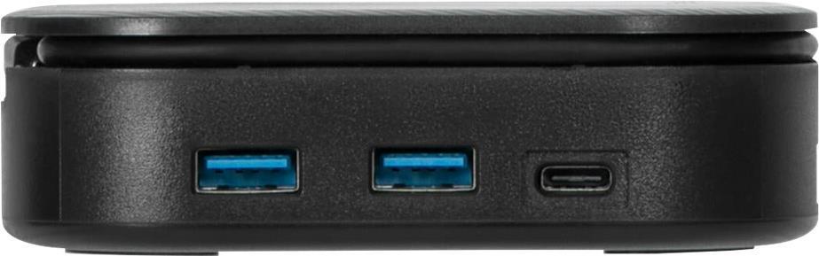 Diese TAA-konforme Dockingstation verfügt über ein verstaubares Hostkabel und ein kompaktes, leichtes Design, das sich leicht in der Tasche Ihres Rucksacks oder Gepäcks verstauen lässt und sicherstellt, dass sie keinen wertvollen Platz am Arbeitsplatz einnimmt, wenn Sie unterwegs arbeiten. Die gummigepolsterte Unterseite sorgt dafür, dass die Multiport-Dockingstation an einem Ort bleibt.