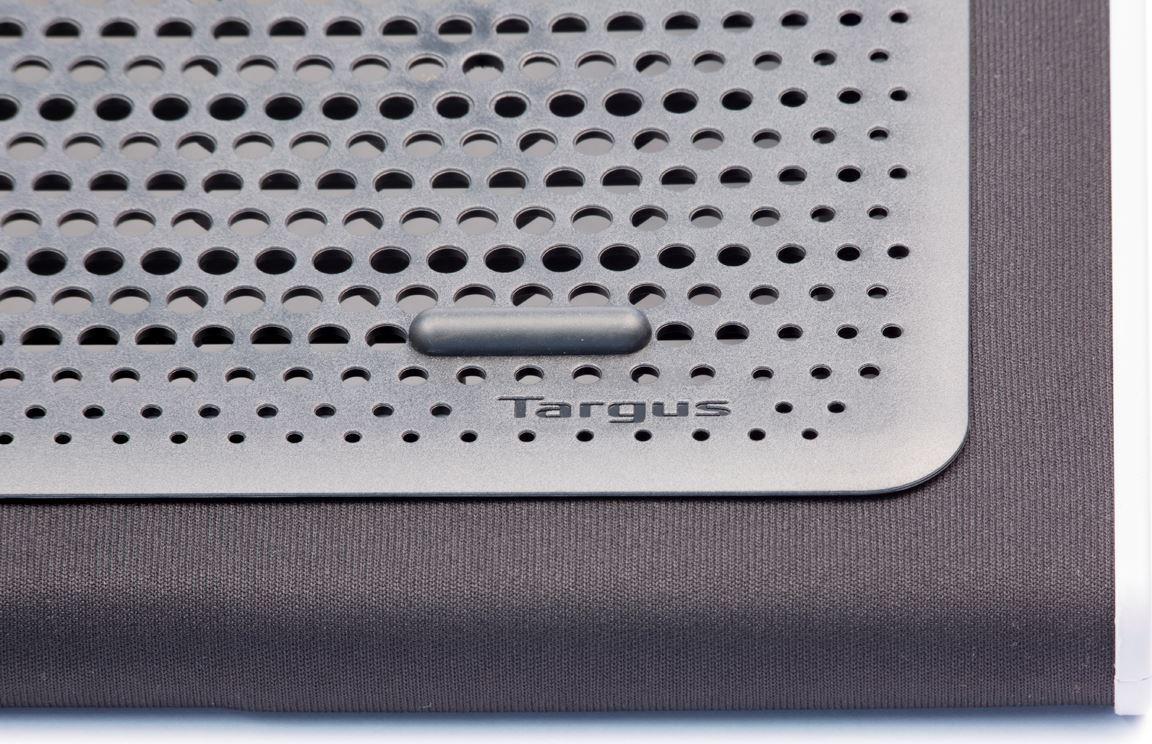 Der Notebook-Kühlsockel von Targus bietet eine komfortable und ergonomische Arbeitsfläche, die zudem noch dafür sorgt, dass weder Sie noch Ihr Notebook sich überhitzen. Der Kühlsockel liegt auf Ihrem Schoß und verteilt die vom Notebook erzeugte Wärme mit Hilfe von zwei Lüftern. Dieser Luftstrom wird behindert, wenn das Notebook auf einem Kissen oder einer Bettdecke verwendet wird. Stecken Sie einfachen den USB-Stecker in einen Anschluss ein, um die Kühlung zu aktivieren. Dank der ergonomischen Neigung müssen beim Tippen keine Abstriche gemacht werden, und das weiche Neopren-Material sorgt für gepolsterten Komfort auf Ihrem Schoß. Dank der offenen Konstruktion können die Lüfter ruhig laufen und für einen konstanten Luftstrom sorgen. Vier Gummifüße an der Oberseite des Kühlsockels verhindern, dass das Notebook wegrutscht. Die angewinkelte Gestaltung in Kombination mit der Ausführung aus weichem Neopren sichert maximalen Komfort auch bei längeren Einsatzzeiten, damit Sie nie die Lust an Ihrem Notebook verlieren.