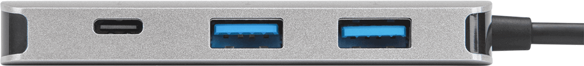 Verwandeln Sie einen USB-C-Anschluss in zwei USB-A-Anschlüsse und zwei USB-C-Anschlüsse mit dem USB-C Multi-Port-Hub mit 2x USB-A- und 2x USB-C-Anschlüssen mit 100W PD Pass-Thru. Schließen Sie Ihre USB-A- und USB-C-Peripheriegeräte - wie Mäuse, Tastaturen, Flash-Laufwerke und Festplatten - an, indem Sie bis zu vier Geräte in die USB-Anschlüsse einstecken und das angebundene USB-Kabel mit dem USB-C-Anschluss Ihres Computers verbinden.