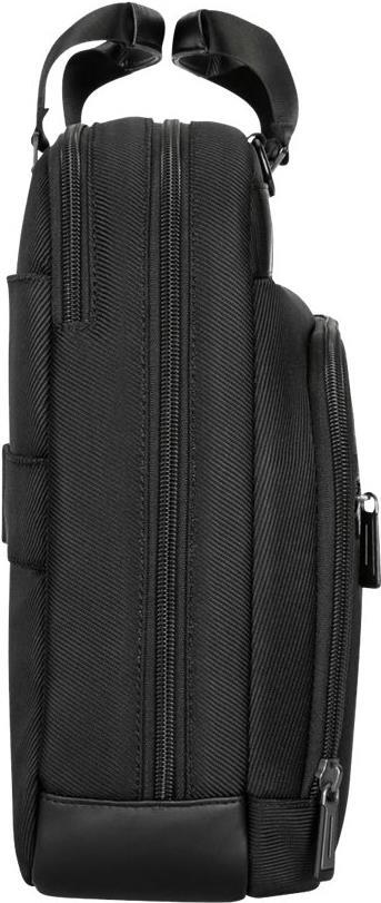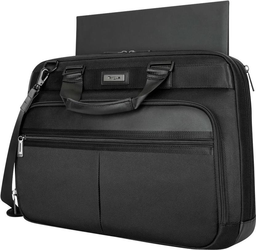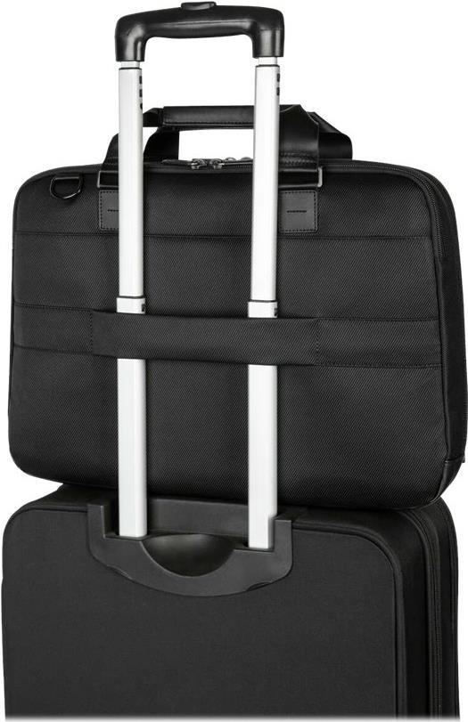 Ausgestattet mit weichen Tragegriffen, gepolsterten Schultergurten und einem Trolley-Gurt für bequemes Stapeln und Rollen ist die Targus Mobile Elite Topload Aktentasche der optimale Reisebegleiter.