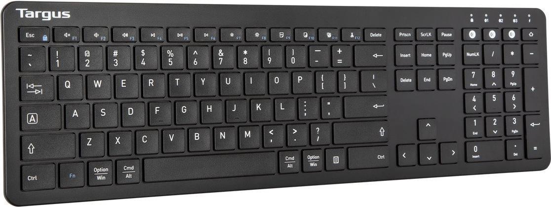 Die kabellose Multi-Device-Bluetooth-Tastatur mit antimikrobiellem Layout in voller Größe wurde entwickelt, um Ihnen ein komfortables Tipperlebnis zu bieten und Sie bei Ihrer Arbeit zu unterstützen. Dank der zuverlässigen und stromsparenden Bluetooth 5.1-Verbindung und der Multi-Device-Konnektivität können Sie Ihren kabellosen Arbeitsbereich auch unterwegs nutzen.Ein zusätzlicher Vorteil dieser Tastatur ist der antimikrobielle Schutz DefenseGuard von Targus, der für eine saubere Oberfläche sorgt und die Tastatur kontinuierlich schützt, indem er das Wachstum von Mikroorganismen verhindert. Im Gegensatz zu örtlich aufgetragenen Sprays sind DefenseGuard-Tastaturen mit einem antimikrobiellen Zusatzstoff behandelt, der sich nicht abnutzt und für die gesamte Lebensdauer des Produkts anhält.