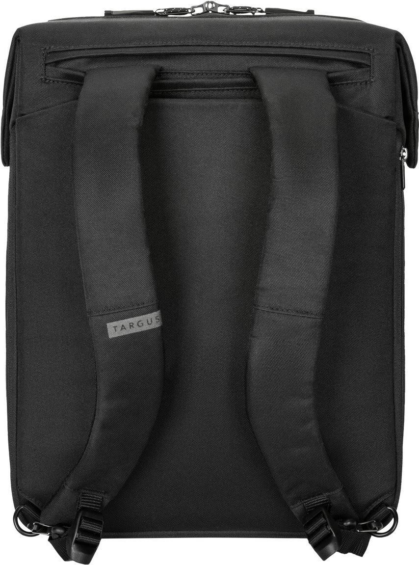 Ob auf dem Rücken oder über der Schulter - der 15-16\" Work+ Convertible Daypack von Targus kann auf zwei Arten getragen werden.Der leicht zu beladende Deckel öffnet sich zu einem erweiterbaren Hauptfach mit gepolstertem Schutz für Ihren Laptop. Magnetverschlüsse und ein abschließbarer Reißverschluss sorgen dafür, dass der Inhalt an Ort und Stelle bleibt, wohin der Tag Sie auch führt.Ob Sie zum Laufen, zum Fliegen oder zum Essen nach dem Arbeitstag unterwegs sind, packen Sie ein weiteres Paar Schuhe in das Außenfach. Die vorgeformten Schultergurte lassen sich leicht verstauen, und mit dem integrierten Trolley-Gurt können Sie die Tasche an Ihrem Gepäck befestigen.