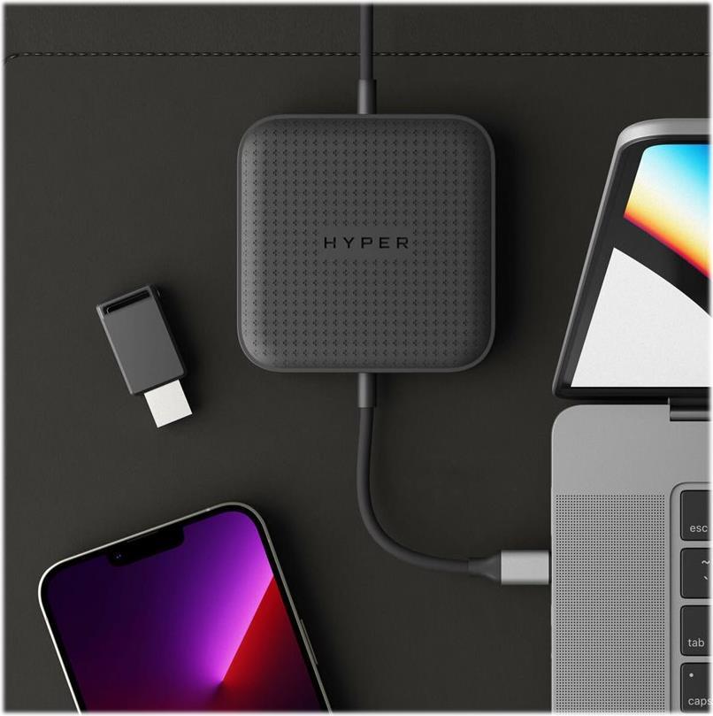 Das HyperDrive USB4 Mobile Dock ist eine schlanke, tragbare USB4-Dockingstation mit integriertem HDMI 2.1 und DisplayPort 1.4 für die Unterstützung eines einzelnen 8K 30Hz-Displays und kann zwei 4K 60Hz-Displays auf MST-fähigen Geräten unterstützen. Sie bietet auch die Möglichkeit, ein Host-Gerät mit USB-C 85W Stromzufuhr schnell aufzuladen, während 2x USB-A 10Gbps-Ports für blitzschnelle Dateiübertragungen zur Verfügung stehen. Kompatibel mit USB4-Geräten, Mac OS, Thunderbolt 4 und 3 Windows-PCs und Thunderbolt-Dockingstationen.