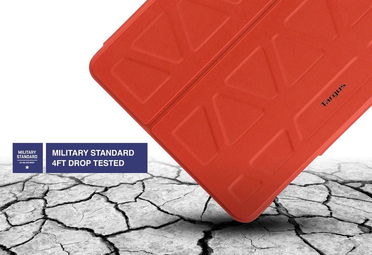 Targus Pro-Tek Hülle für das 10,5\" iPad Pro bietet modernsten Schutz für Ihr Tablet. Die stoßdämpfende, passgenaue Schale verfügt über einen robusten äußeren Rand mit Zugriff zu iPad-Anschlüssen und -Kamera. Die in der Hülle integrierten Audio-Vertiefungen rund um die Lautsprecher des Geräts verstärken die Tonausgabe nach vorne. Das ausgefeilte Design der Hülle lässt sich gut fassen und ist wasserabweisend. Sie verfügt über einen sicheren Magnetverschluss, um das Display zu schützen. Die Abdeckung lässt sich in einen Ständer mit zahlreichen Neigungswinkeln und in eine bequemen Position zum Tippen umwandeln.