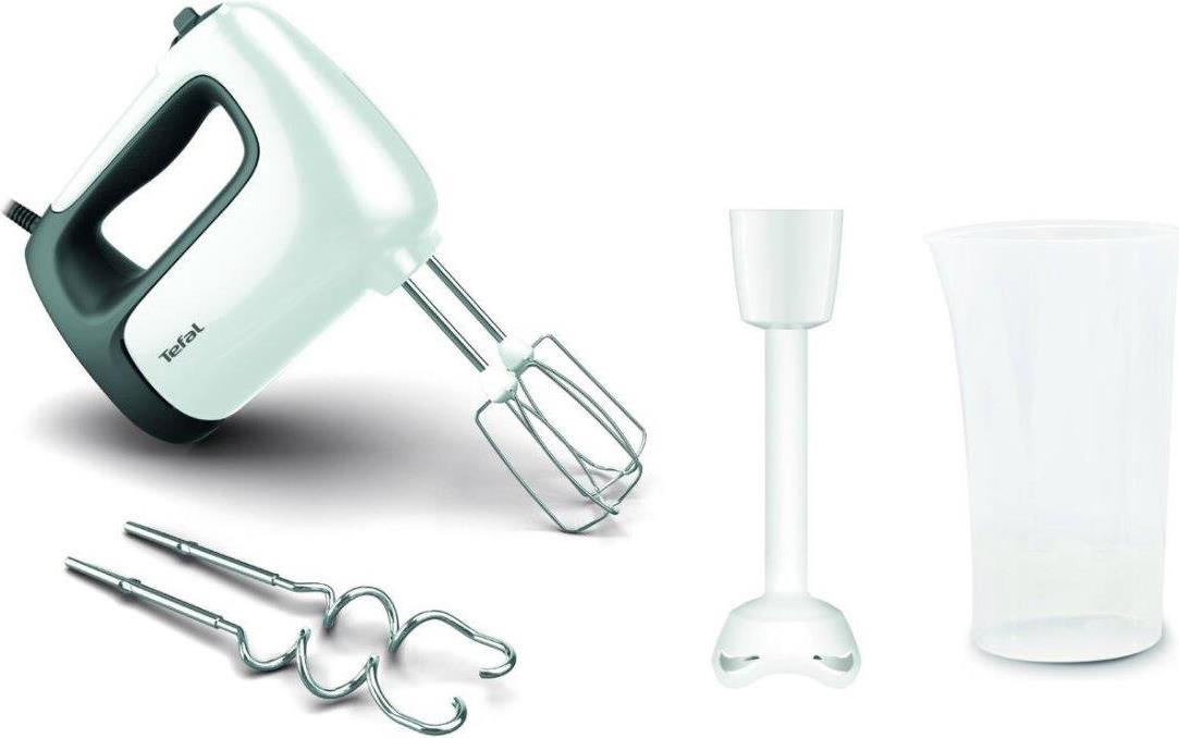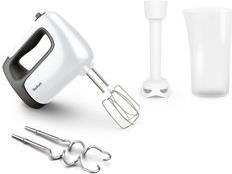 Für jeden Bedarf in der Küche bietet der Tefal Prep'Mix+ Handmixer solide und vielseitige Leistung. Ein Hochleistungsmotor mit 500 W sorgt für hervorragende Ergebnisse bei leichten als auch bei zähen Zubereitungen. Im Lieferumfang sind enthalten sich auch ein Schneebesen und ein Knethaken aus hochwertigem Edelstahl für ausgezeichnete Mix-Ergebnisse. Damit können Sie eine Vielzahl an Zubereitungen im Handumdrehen zubereiten, von luftiger Schlagsahne, bis hin zu außergewöhnlichem Pizzateig!
