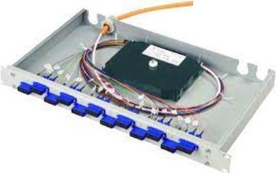Telegärtner 48,30cm (19") LWL-Rangierverteiler BASIS eco 1HE, 6xSC-Duplex Kupplung, Keramikhülse, Kunststoffgehäuse, Farbe: blau; 12x E9/125, OS1, 2m, SC Faser-Pigtails; eingefärbt, spleißfertig abgesetzt (H02030D9008)