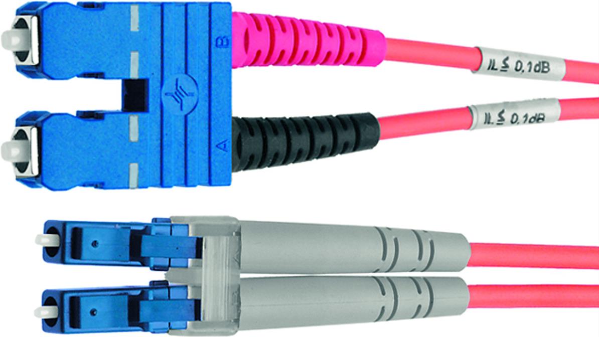 Telegärtner LWL-Duplex-Adapterkabel 2E9/125 OS2, 1. Seite SC Duplex, 2. Seite LC Duplex, 10,0m, Gehäuse: blau, Kabel: gelb - 1 Stück (L00895A0040)