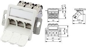 Modulträger inkl. 3 AMJ-S Module Cat.6A T568A, kombinierbar mit Abdeckungen diverser Schalterprogramm-Hersteller