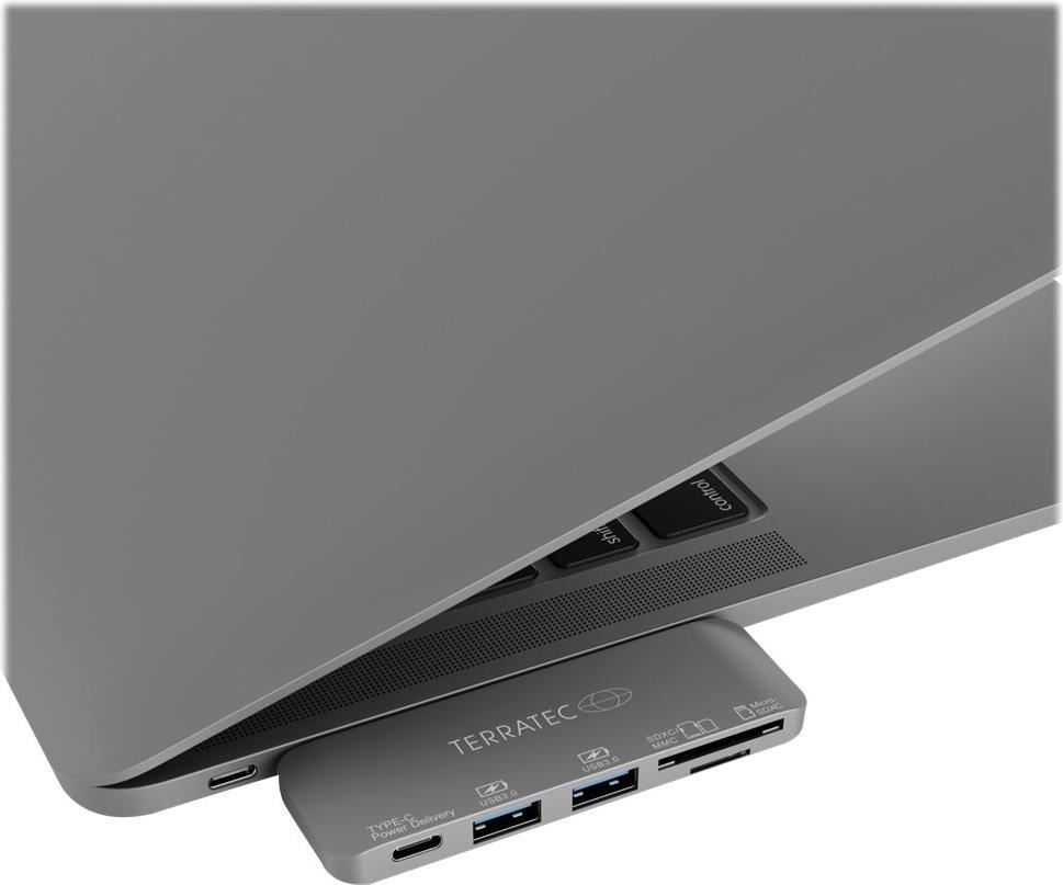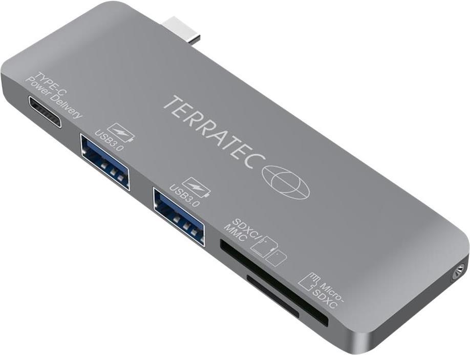 Zu wenige Ports sind Geschichte: Damit der schlanke Formfaktor aktueller Notebooks - egal ob MacBook, MacBook Pro, Chromebook oder Windows Notebook - nur noch Vorteile mit sich bringt, können deren Anschlüsse durch den TERRATEC CONNECT C7 erweitert werden. Aus lediglich einem USB Type-C Port zaubert der CONNECT C7 einen USB Type-C Port mit Power Delivery, zwei USB 3.0 Anschlüsse mit Schnellladefunktion sowie einen MicroSD- und SD-Kartenleser für alle gängigen Formate. Somit verhindert TERRATEC Schnittstellen-Engpässe im privaten oder geschäftlichen Alltag, welche ein schickes, schlankes Notebook häufig mit sich bringt.