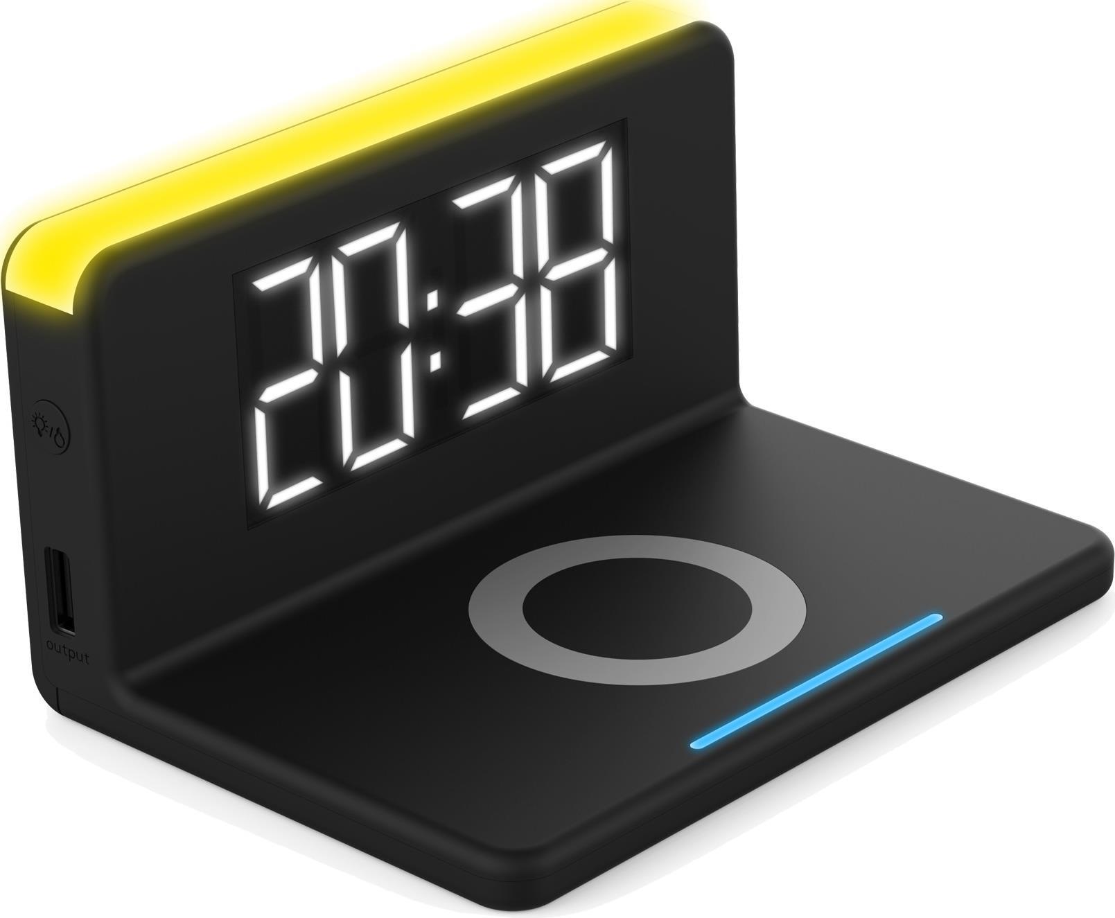 Mit bis zu 10 Watt lädt er Smartphones kabellos auf und erkennt je nach aufgelegtem Mobilgerät die passende Ladeleistung. Zusätzlich bietet der smarte Wecker einen USB-Ausgang zum kabelgebundenen Laden von Tablet, Smartphone und Co.