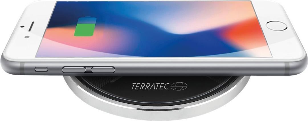Produkttext[/head]Gut aufgelegt: Der kabellose Energielieferant TERRATEC ChargeAIR dot! bietet eine Induktionsfläche für komfortables Laden entsprechender Smartphones. Mit bis zu 10W Leistung und automatischer Erkennung versorgt es Phones besonders schnell und sicher mit Energie. Seine gummierte Oberfläche gewährleistet einen sicheren Halt, während das silberfarbene Gehäuse ein edles Finish liefert. So wird er zum hochwertigen Accessoire auf dem Schreibtisch, der Nachtkonsole oder dem Couchtisch.[head]Hauptmerkmale