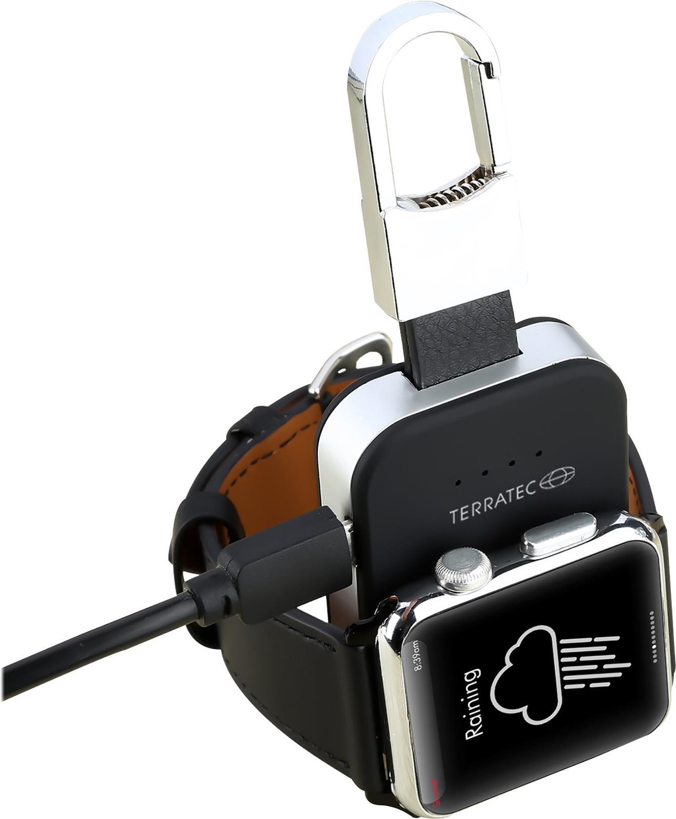 Mit dem TERRATEC ChargeAIR Key ist die mobile Ladestation für die Apple Watch immer mit dabei. Einfach mit dem integrierten Karabinerhaken am Schlüsselbund befestigt, ist das Lade-Accessoire der Retter in der Not, wenn der Watch unterwegs die Puste ausgeht. Die flexible Ladestation hat einen integrierten Akku mit 950 mAh und versorgt das Gerät kabellos mit neuer Energie.