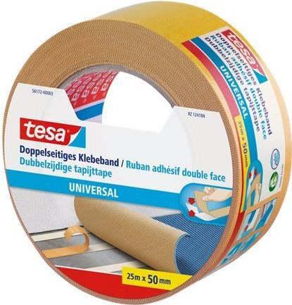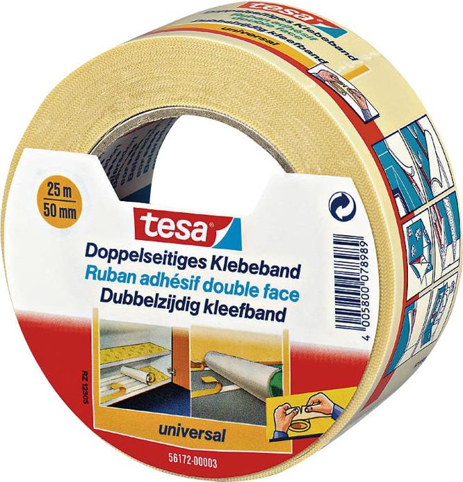 tesa Doppelseitiges Klebeband universal, 50 mm x 25 m sichere und dauerhate Verklebung, von Hand einreißbar (56172-3-1)