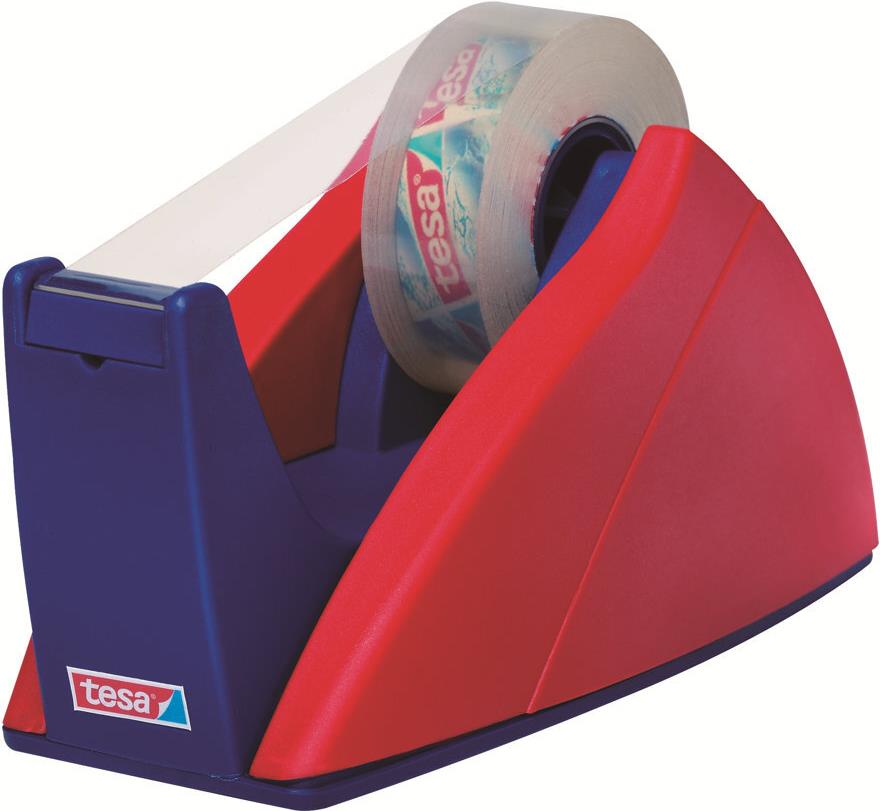 tesa Easy Cut Tischabroller, rot / blau, unbestückt für Klebefilm 19 mm x 33 m, standsicher, Lieferung erfolgt ohne Klebefilm, Maße Tischabroller: (B)250 x (T)106 x (H)140 mm (57421-0 / 57421-00000-00)