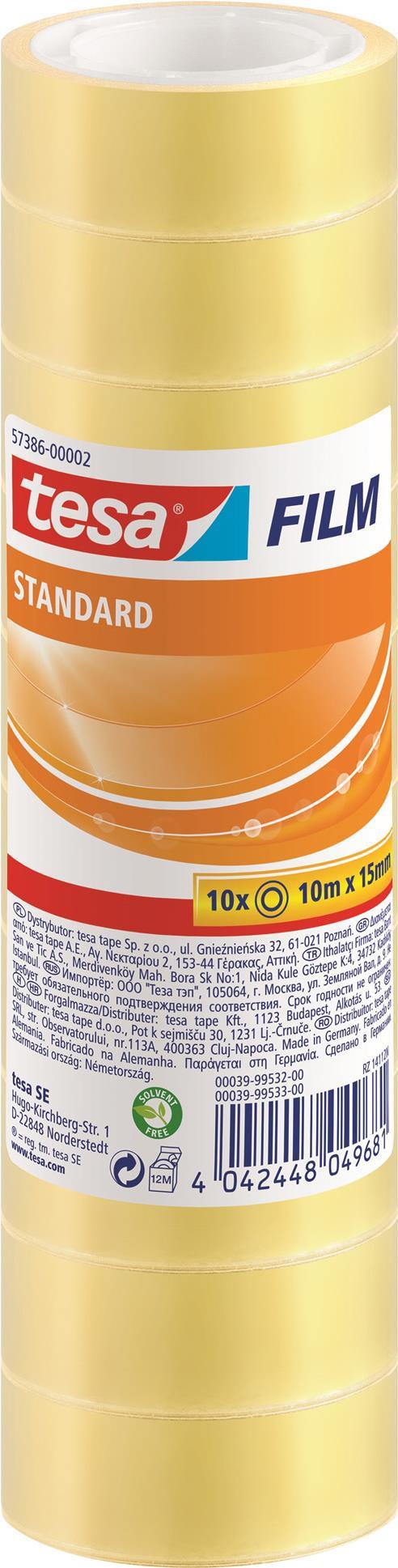 tesa Film standard, transparent, 15 mm x 10 m Klebefilm aus PP-Folie, gute Klebkraft, leicht abrollbar (57386-00002-00)