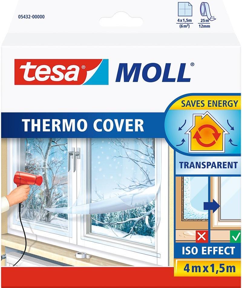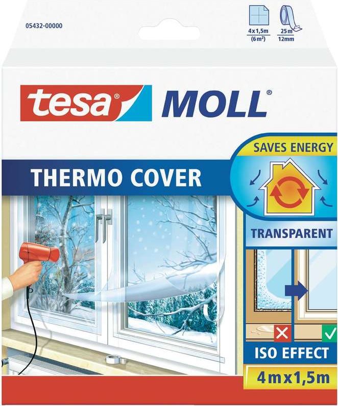 tesa MOLL Thermo Cover Fensterisolierfolie, 4,0 m x 1,5 m durchsichtig, stoppt Kälte, spart Energie, reduziert Kondenswasserbildung an der Scheibe, einfache Montage, Farbe: transparent (05432-00000-00 / 05432-00-00 / ...