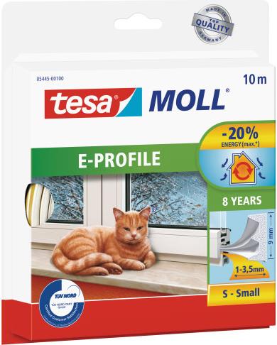 Die selbstklebende, einfach anzubringende tesamoll® E-Profil Gummidichtung für Fenster und Türen ist extrem witterungsbeständig aufgrund der hohen Qualität des Profil-Gummis. Spart bis zu 20% Heizkosten ein (bei entsprechender Spaltabdeckung).