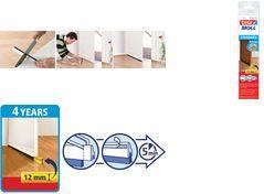 tesa Moll STANDARD Türdichtschiene, weiß, 37 mm x 1 m Tür-Dichtung aus Kunststoff, selbstklebend, für Spalten bis 12 mm, mit elastischer Bürstenkante, stoppt Lärm, Staub, Zugluft und Kälte, für glatte Parkett-, ...