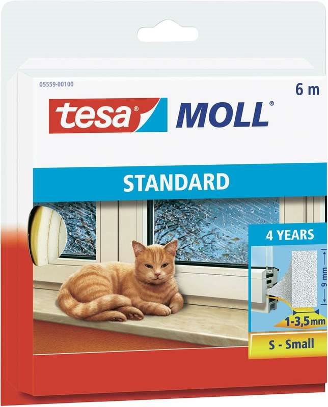 tesa Moll STANDARD I-Profil Schaumstoff-Dichtung, 9 mm x 6 m selbstklebender Schaumstoff-Dichtung für Fenster und Türen, - 1 Stück (05559-00100-00)