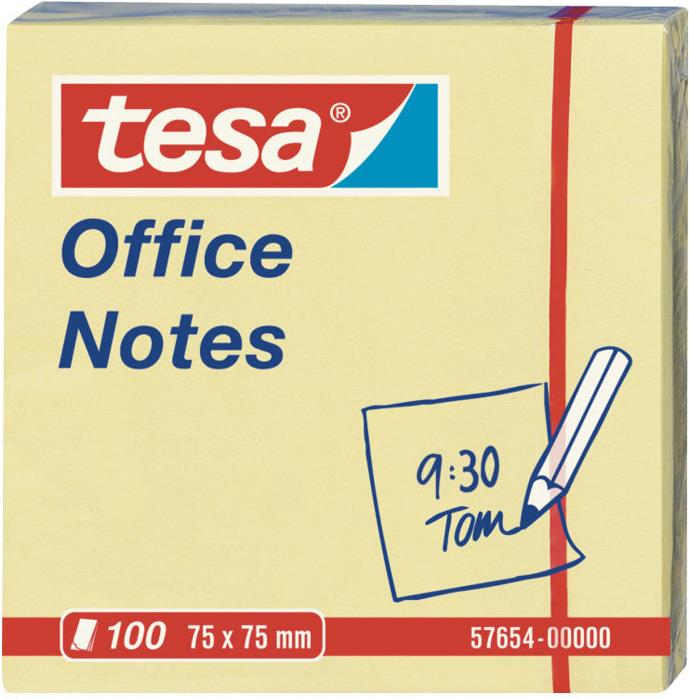 tesa Office Notes Haftnotizen, 75 x 75 mm, gelb 60 g-qm, 100 Blatt - Block (57654-00000-05)