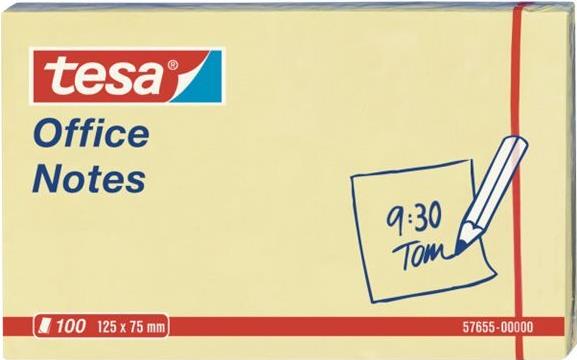 tesa Office Notes Haftnotizen, 125 x 75 mm, gelb 60 g-qm, 100 Blatt - Block - 12 Stück (57655-00000-05)