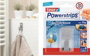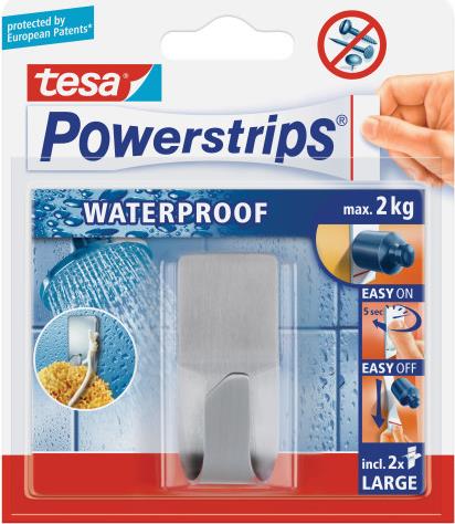 tesa Powerstrips Haken ZOOM WATERPROOF, aus Metall, silber einfache Montage, geeignet für feuchte Umgebungen (Dusche/ (59707-0-0)