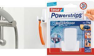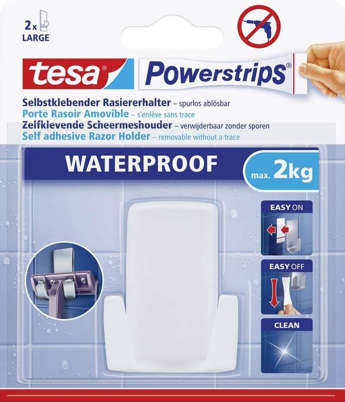 tesa Powerstrips Rasierhalter "WAVE" WATERPROOF, weiß geeignet für feuchte Umgebungen (Dusche/Badezimmer) (59703-00000-00)