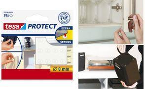 Die selbstklebenden und transparenten tesa Protect® Rutsch-/Lärmstopper dämpfen lästige Geräusche beim Schließen von Türen und Schubladen und geben Gegenständen sicheren Stand oder schützen Möbel vor Schäden.Geben Gegenständen sicheren StandDämpfen Geräusche beim Schließen von Türen und Schubladen