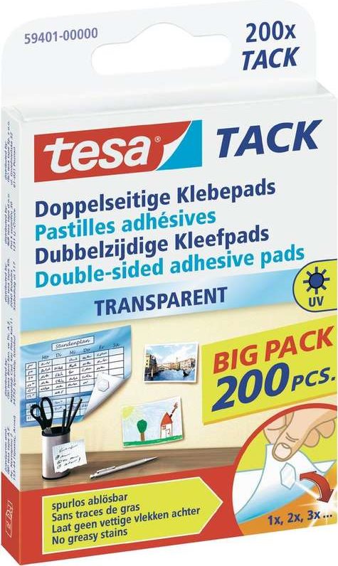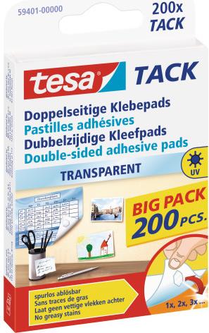 tesa TACK Klebepads Big Pack, transparent beidseitig klebend, wieder verwendbar, spurlos ablösbar (59401-00000-00)