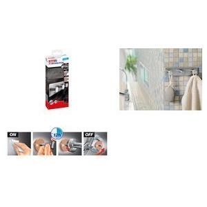 tesa® Powerbutton ClassicHaltekraft: 12 kgDie starke Alternative zu Bohrer, Hammer und NagelIdeal um Gegenstände in der Küche, im Badezimmer oder an anderen Plätzen in Ihrem Zuhause zu befestigen. Starker Halt auf fast allen Untergründen (außer Putz, Tapete, PE, PTFE oder PP). Die Fixierung der Haken mit dem tesa® Powerbutton bedient sich der patentierten \"\"nie wieder bohren\"\"-Technologie und ist denkbar einfach. Ein Adapter aus Metall, der als Mittler zwischen Klebstoff und dem zu befestigenden Objekt dient, wird zunächst mit Hilfe eines Rings aus Klebeband in die richtige Position gebracht und dann mit einem Einkomponentenkleber befüllt. Der luftdurchlässige, hochfeste Adapter sorgt für eine optimale Aushärtung des Klebers. Dank der vollflächigen Füllung ist auch auf unebenen Flächen ein optimaler Halt gewährleistet. Die eigentlichen Haken lassen sich dann nach 12 Stunden kinderleicht anbringen. Wiederablösbar von fast allen Untergründen. Wasserfest und temperaturbeständig.Technische Daten: Ausführung: Hakenleiste mit 3 HakenHaltekraft: 12 kgProduktabmessung, Breite: 179 mmProduktabmessung, Höhe: 45 mmTyp (Hersteller-Typ): 59334Weitere technische Daten: Material: Stahl