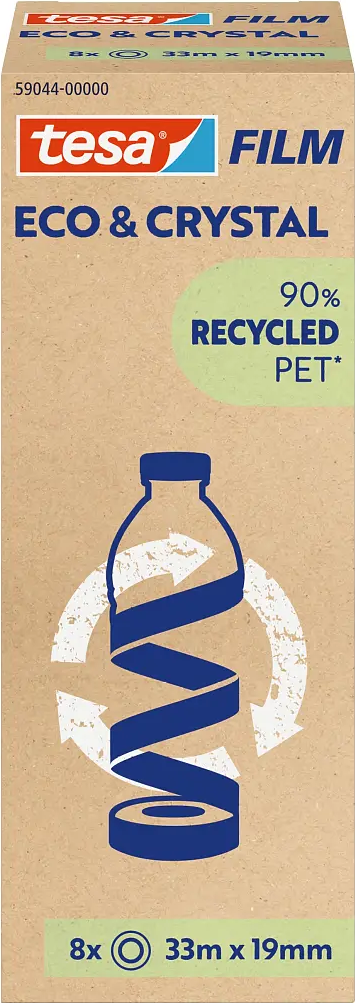 tesafilm® aus recycelten PET-Flaschen - starke Klebkraft bei voller Transparenz, gut geeignet zum Kleben, Verpacken, Befestigen, Dekorieren oder Reparieren. tesafilm Rolle mit Rollenkern aus 100% ...