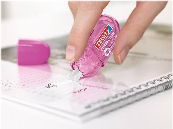 • tesa ecoLogo Einweg-Mini-Korrekturroller, 5mm x 6 m, Display für präzises und sauberes Korrigieren, mit Schutzkappe - 1 Stück (59816-00000-00)