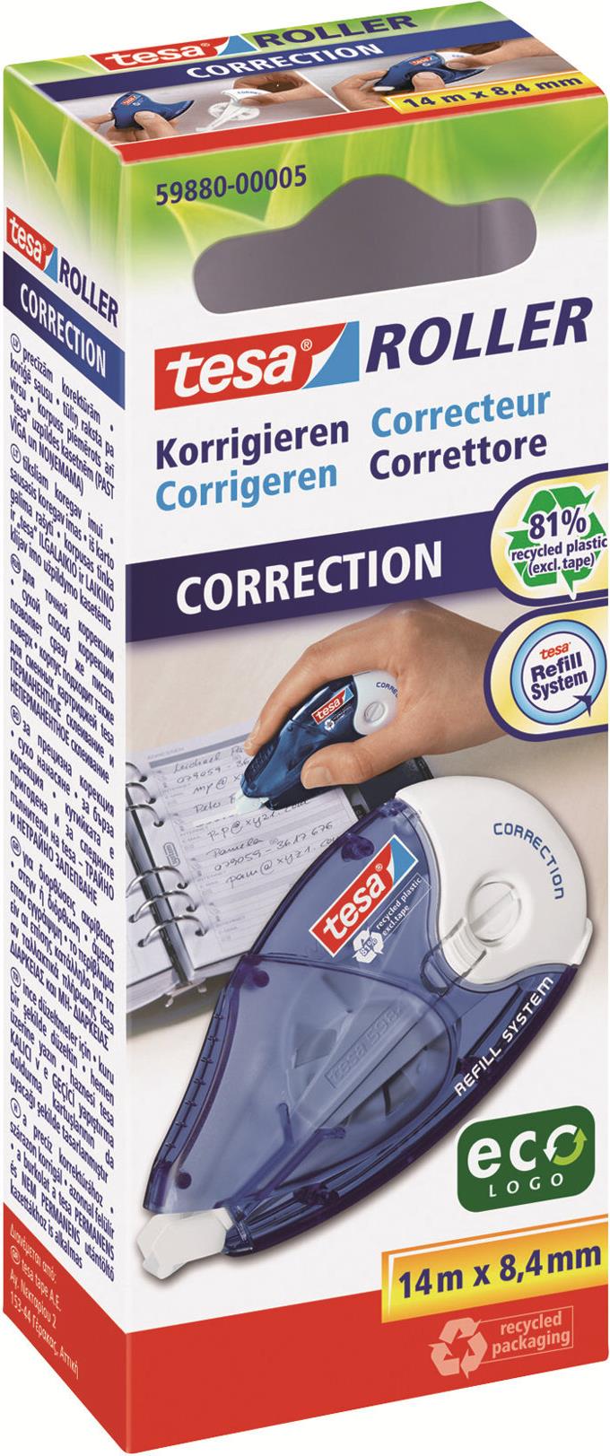 tesa ecoLogo Korrekturroller Refill Correction 8,4 mm x 14 m, ohne Lösungsmittel, auch für Linkshänder (59880-5-5)