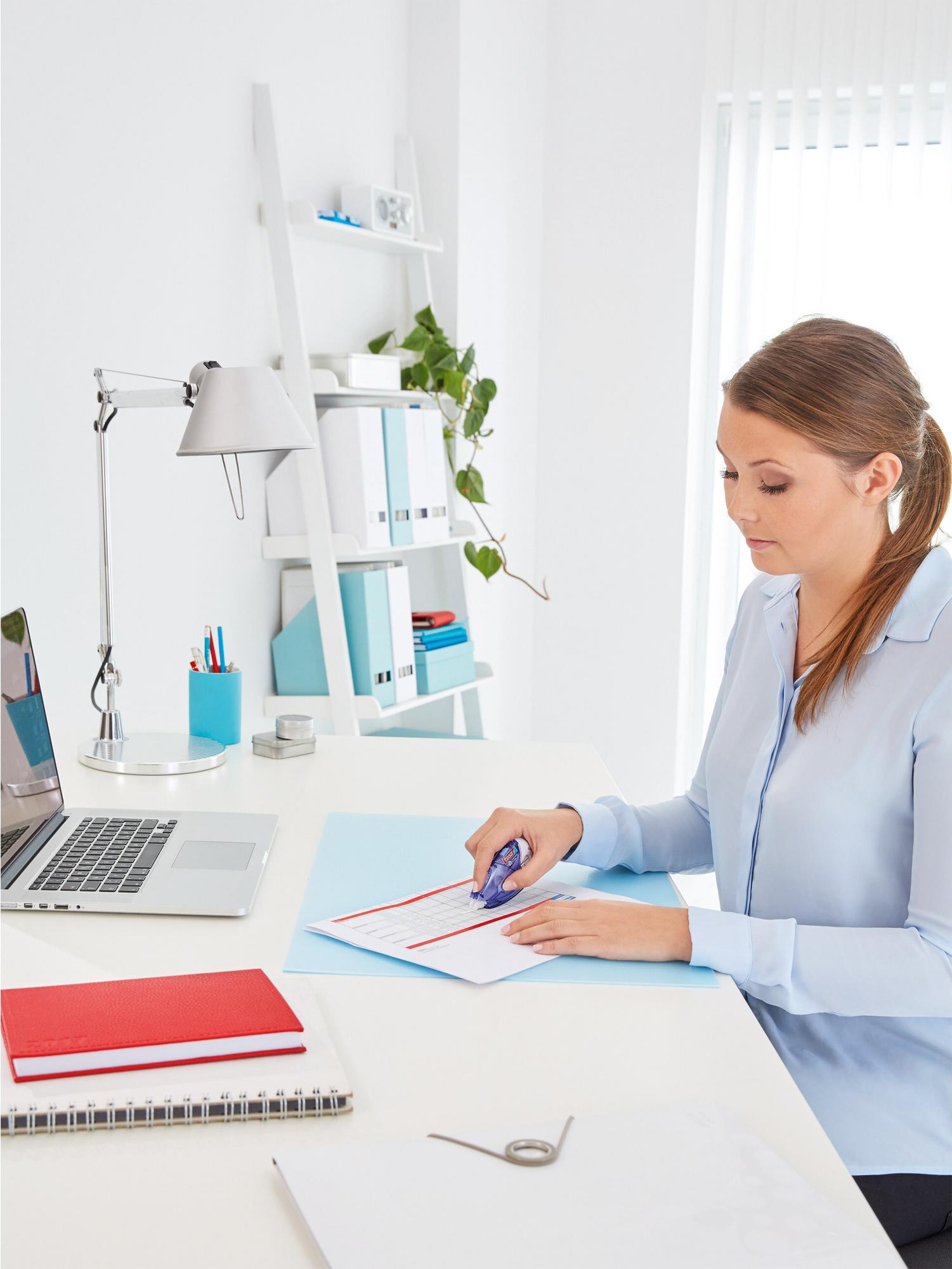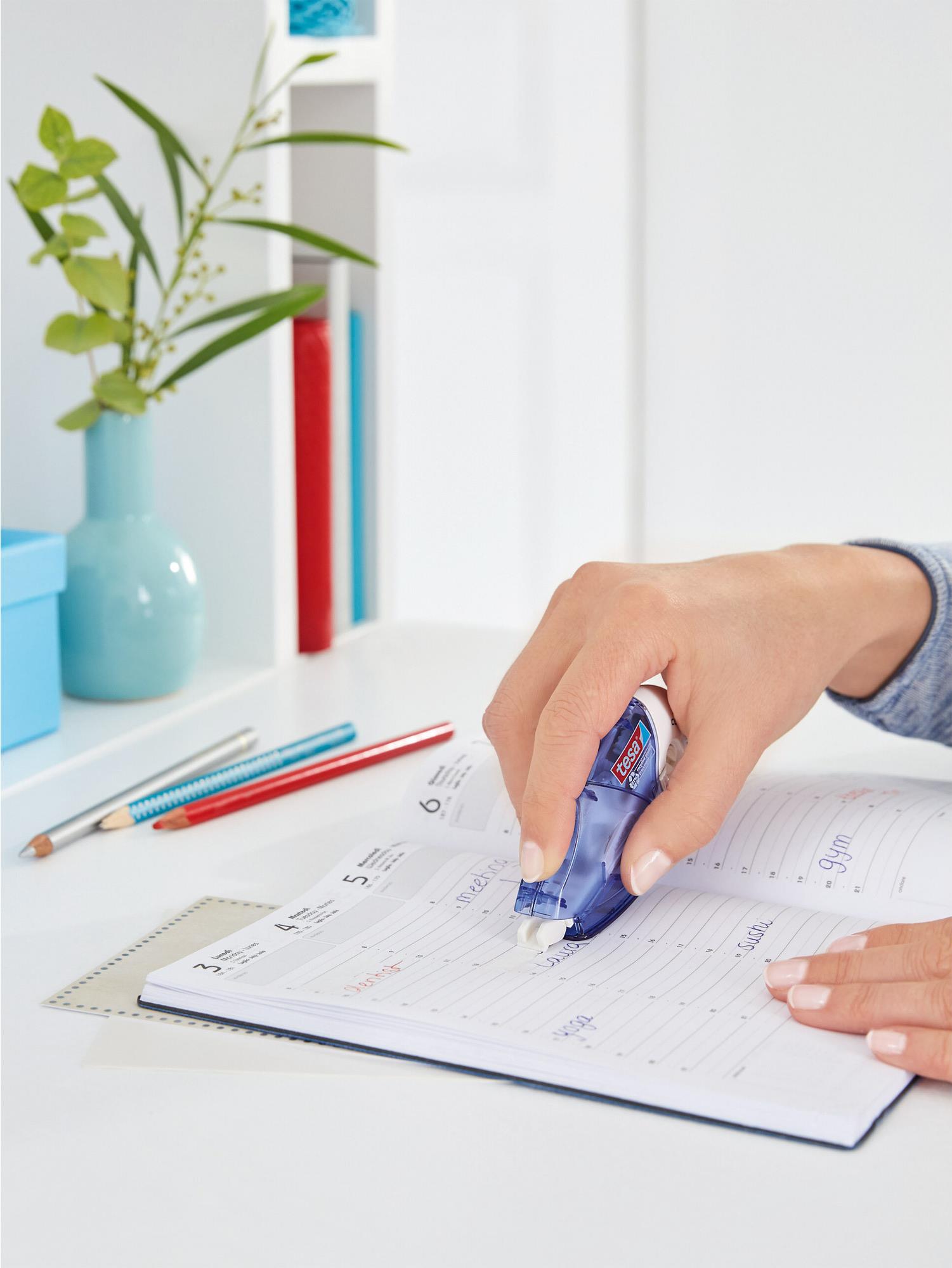 Der tesa Roller Korrigieren ecoLogo ist praktisch und handlich für jeden, der etwas zu korrigieren hat, und ermöglicht präzise Korrekturen auf Papier.