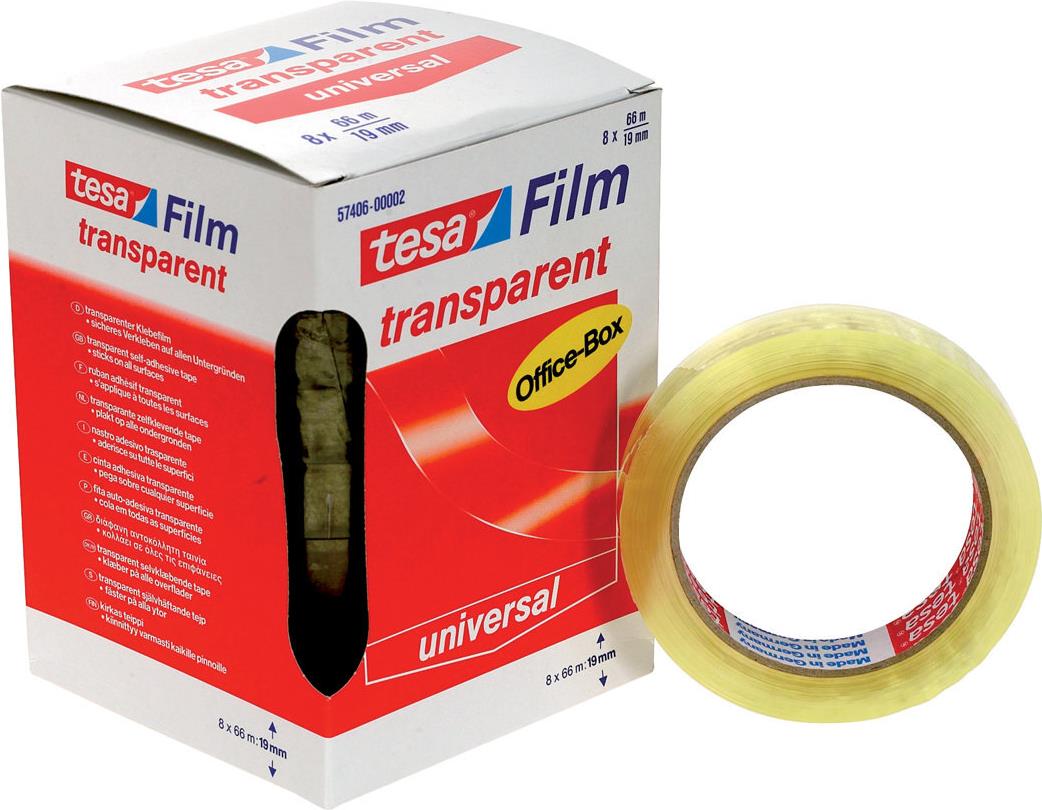 tesafilm® transparent, 8 Rollen, Office Box, 66m x 19mm (11640K)