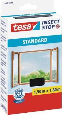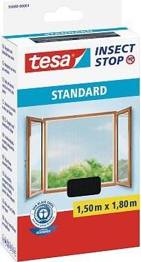 tesa Fliegengitter STANDARD für Fenster, 1,50 m x 1,80 m waschbar bis 30 Grad, UV-beständig (55680-00001-01)