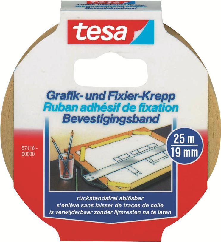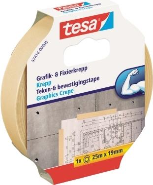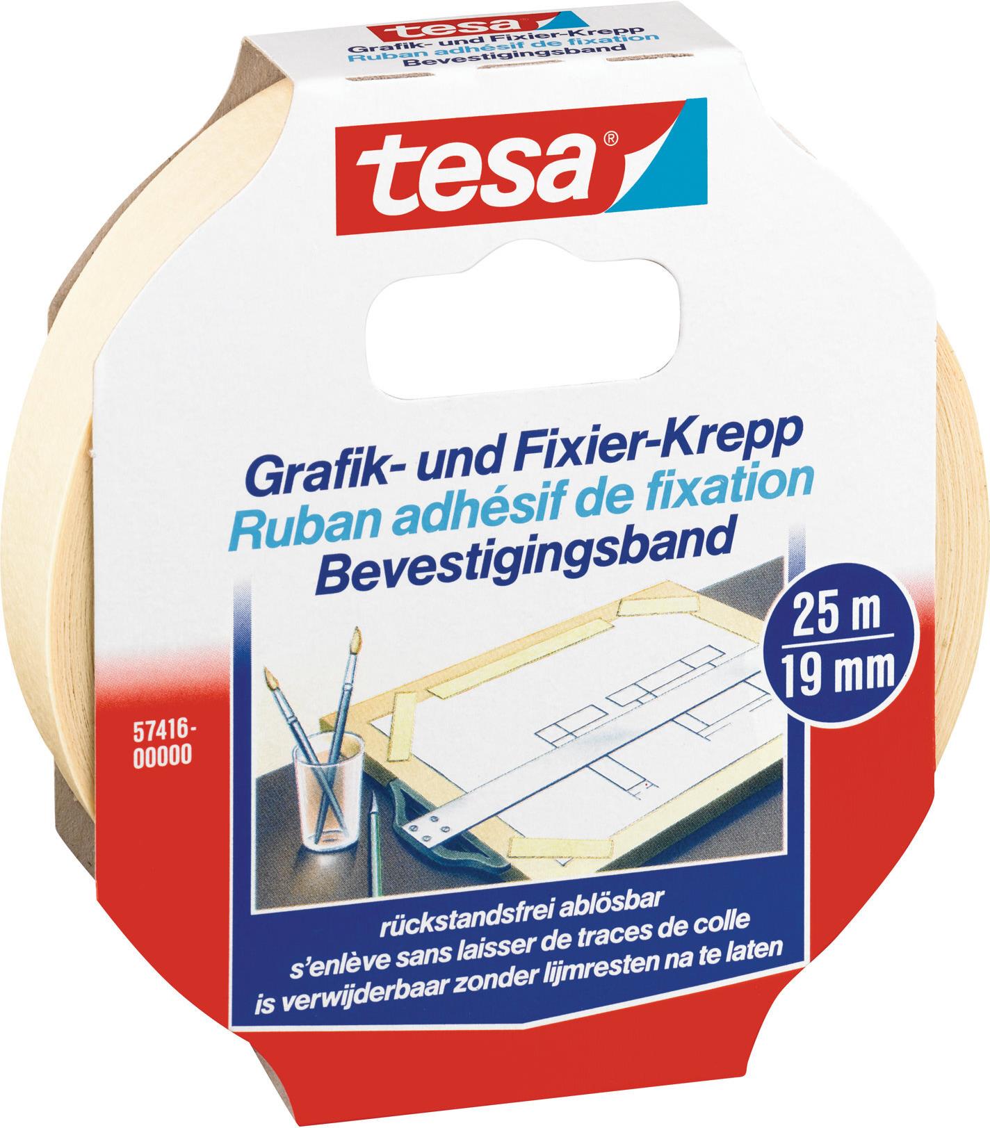 tesa Grafik- und Fixierkreppband, 19 mm x 25 m schwach gekreppt, rückstandsfrei ablösbar (57416-00000-02)